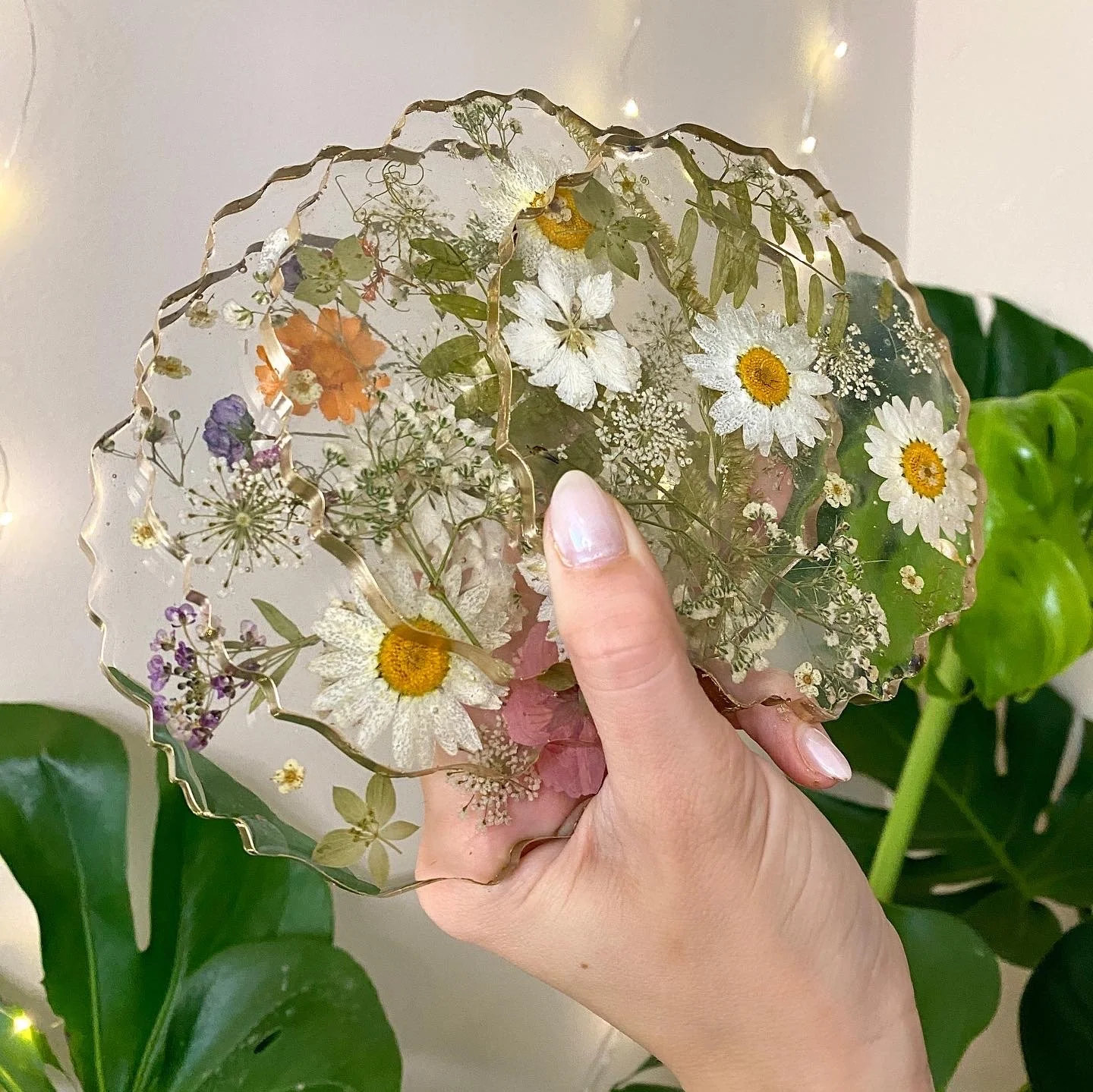 Hand poured resin coasters framed with gold and layered with real dried florals, fungi and juicy dried fruits - like tiny pieces of art for your table! Each coaster comes beautifully packaged & gift ready with a microfiber cloth and care card.✨